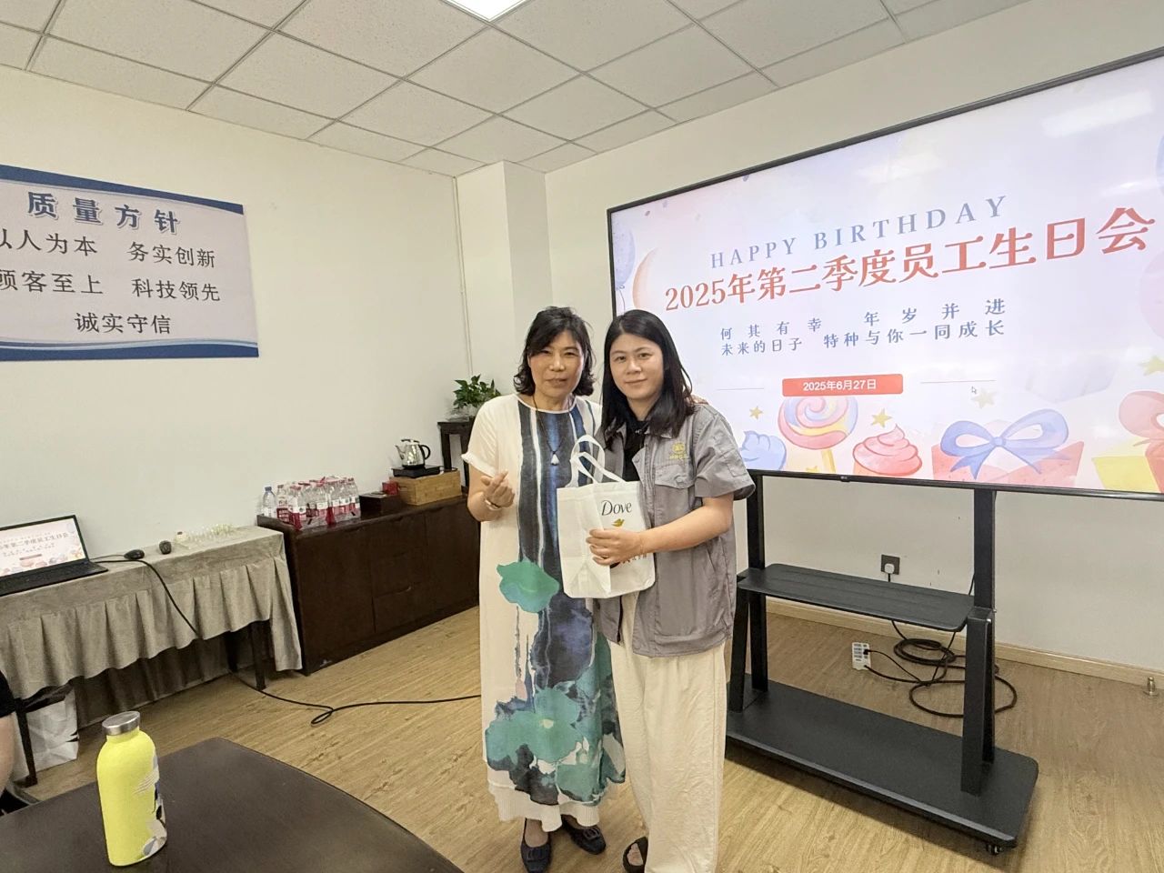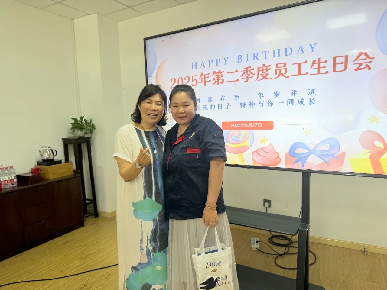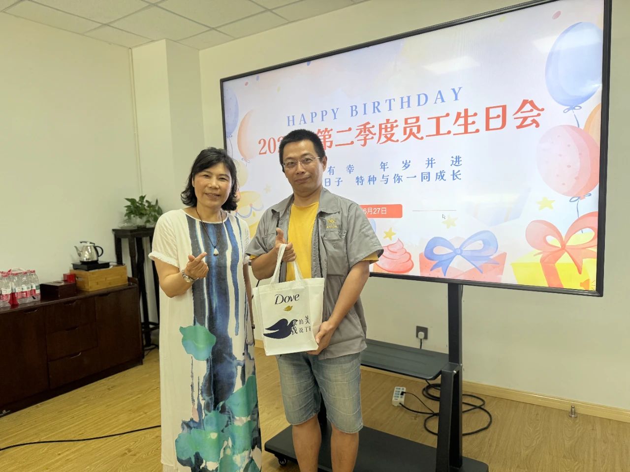 Okrem úprimných želaní narodenín a sladkých koláčov, spoločnosť premyslene pripravila personalizované darčeky pre každého celebranta narodenín! Keď boli darčeky dodané, prekvapené a potešené úsmevy okamžite rozžiarili ich tváre. Toto exkluzívne gesto starostlivosti slúži ako najteplejšie uznanie pre vyhradenú prácu každého.
