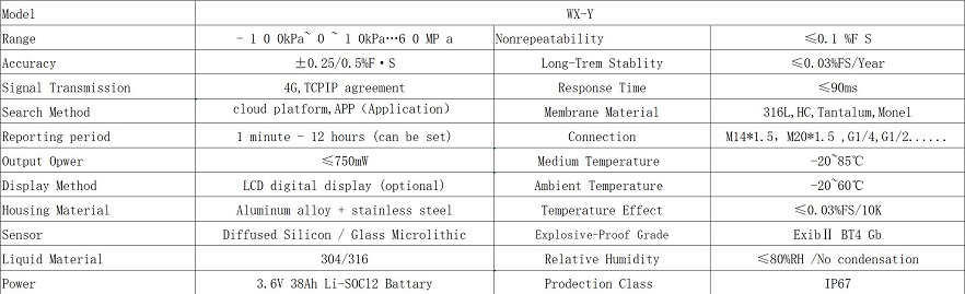 Bezdrôtový vysielač teploty je nízkoenergetický inteligentný prístroj s možnosťou bezdrôtovej komunikácie. Je založený na pokročilom priemyselnom mikrokontroléri ako jeho jadre, využíva vysokokvalitné senzory ako front-end zberu dát a kombinuje IoT bezdrôtový dátový modul. Realizuje bezdrôtový prenos údajov prístroja na mieste do cloudu prostredníctvom sietí WIFI a 4G. Na rýchlu detekciu abnormálnych teplôt a zaistenie bezpečnosti potrubia sa používajú dve metódy, a to časovaný prenos a prahový alarm. Tento výrobok používa puzdro odolné voči výbuchu priemyselného typu. Z hľadiska spracovania senzorov sa na viacbodovú teplotnú kompenzáciu používa importovaný platinový odporový teplomer Pt100, aby sa dosiahol stabilný zber dát a zabezpečila sa spoľahlivosť a presnosť dát.