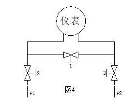 4. Ako je znázornené na obrázku 4 , Ventil vyváženia (bezpečnostný) (ventil 1 ) Mali by byť nastavené pred vstupnými otvormi s vysokým a nízkym tlakom prístroja počas inštalácie a mali by byť v otvorenej polohe a vyvážený ventil by sa mal za ventil uzavrieť 2 a ventil 3 všetky sú otvorené.