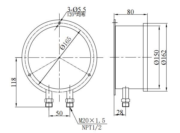 2. Veľkosť vlákna: konvenčné M20 × 1.5 , NPT1/2 (alebo špecifikovaný zákazníkom);