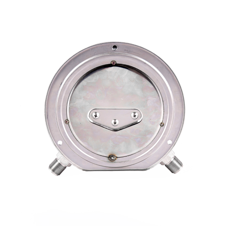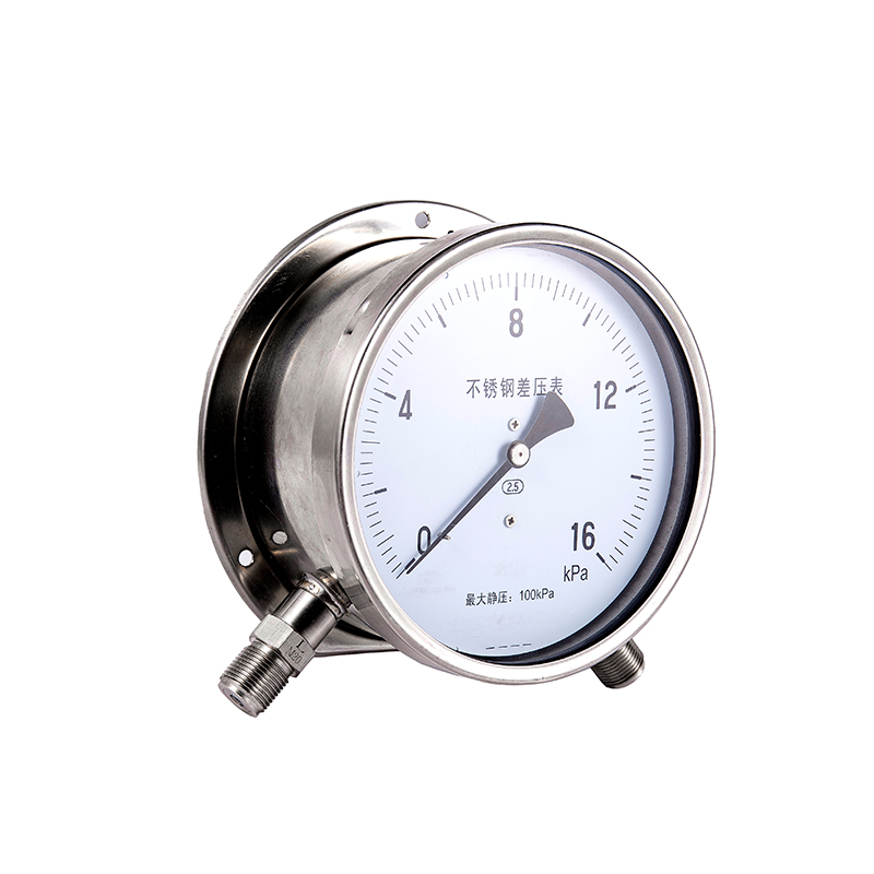Ak sa aplikujú rôzne tlaky (vo všeobecnosti je vysokotlakový koniec vyšší ako nízkotlakový koniec) , sila dvoch bourdónových trubíc pôsobiacich na pohyblivú podporu nie je rovnaká, takže zodpovedajúci posun je generovaný a mechanizmus prenosu prevodu je poháňaný a amplifikovaný a zosilnený hodnota diferenciálneho tlaku je indikovaná po vynechaní.