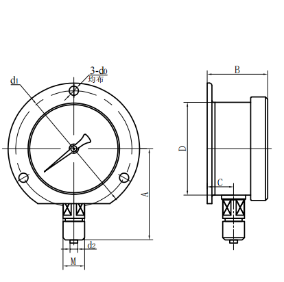 | Ye100 -Ⅲ | 85 | 50 | / | Φ 100 | 16.5 | φ 6 | M20 × 1.5 |