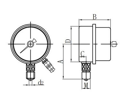 ◆ Aplikácia: Tento typ prístroja je vhodný na meranie tlaku kvapalín, plynov alebo výparov bez rizika výbuchu, bez kryštalizácie, bez solidácie a bez korozívneho účinku na zliatiny medi a medi. Ak je vybavený vhodným obvodom, môže do tlakového systému poslať alarm alebo automatické ovládanie, ktoré sa má merať a riadiť.